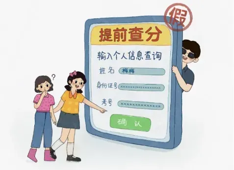 提醒:这是典型的电信诈骗! 高考作弊违规行为 不会以短信、电话、链接等方式通知 教育主管部门和招考机构 绝不会向考生发送此类短信 请各位考生和家长提高警惕 注意保管个人信息 谨防上当受骗! 为了避免广大考生和家长上当受骗,在此为大家揭秘常见的高考诈骗套路,希望大家提高警惕,守护好自己的权益。 1.“提前查询分数” 骗局